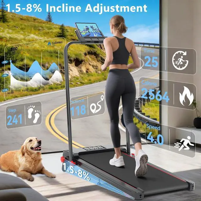 3-level Incline TreadmillIncreases tilt to 8%, burning over 200+calories per hour compared to a basic walking mat. you can still exercise comfortably at home! Whether it' s handling work tasks, making video calls, or watching your favorite shows, this treadmill placed under the table can blend into your lifestyle perfectly. There are no more excuses to avoid exercising