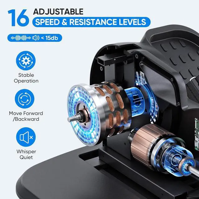 16 Levels of Adjustable Resistance & Speed Different from other elliptical machines on the market, Our THERUN under desk elliptical machine has 1-16 levels of adjustable resistance and exercise speed, which can well meet the exercise needs of different groups of people, allowing you to customize your fitness plan and better achieve your exercise goals