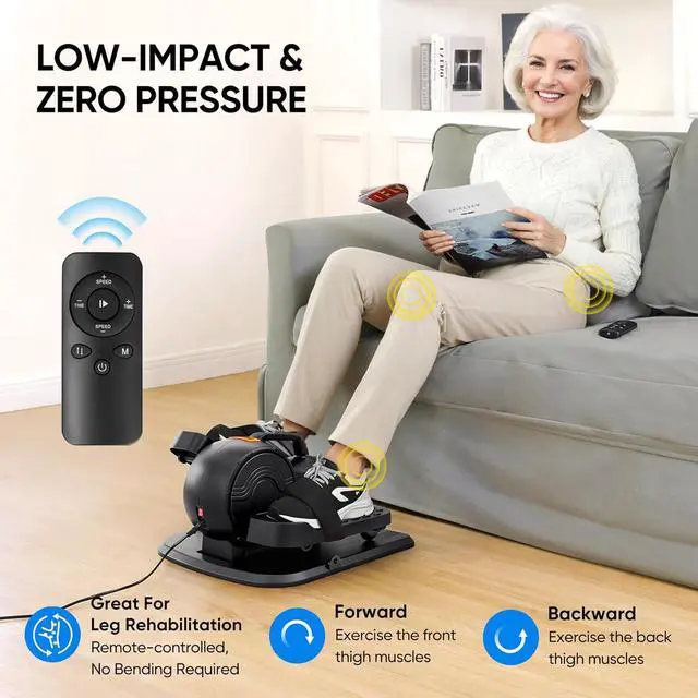 Low Burden, High EfficiencyThis Electric Leg Exerciser is perfect for seniors and those who need leg rehabilitation training, it is a low-intensity exercise that does not burden the body, but at the same time it is a good exercise for the hips and knees, promotes blood circulation and relieves muscle tension, it is a thoughtful gift for seniors and friends