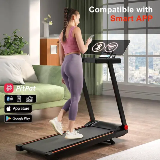 Interactive Fitness with Exclusive PitPat App: Unlock a connected fitness experience on this small treadmill with the included PitPat app. This walking pad with handle lets you join live workouts, compete with friends, and track speed, distance, and calories burned in real time.