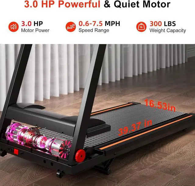 Home Versatile Cardio Training Solution: Achieve effective fat-burning and cardio workouts with this walking pad with handle bar, powered by a 3.0 HP motor and 5% manual incline. Easily switch between walking ( 0.64 MPH), jogging (46 MPH), and running (up to 7.5 MPH) to match your fitness goals. Perfect for HIIT, steady-state training, or as a compact treadmill, this walking pad treadmill adapts seamlessly to your routine.