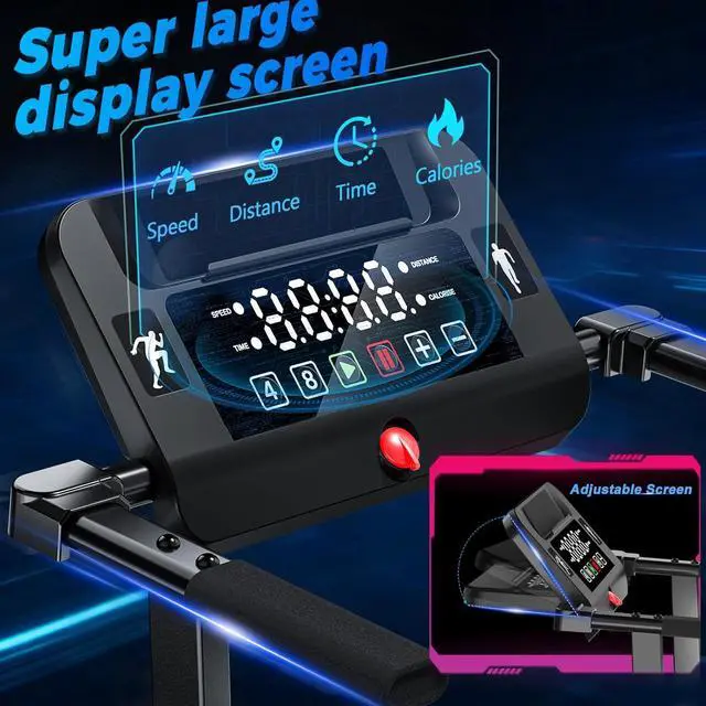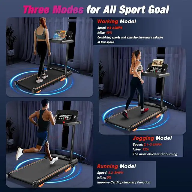 Upgraded 3 in 1 Foldable Treadmill Max 8.0 mph Speed- Speed range 0.68 mph ( 0.63. 8 mph for work/walking, 3.85. 5 mph for jogging, 5.58. 0 mph for running). Track speed, time, distance and calories burned on the Large LED display. (make sure to attach the red safety lock before use. )