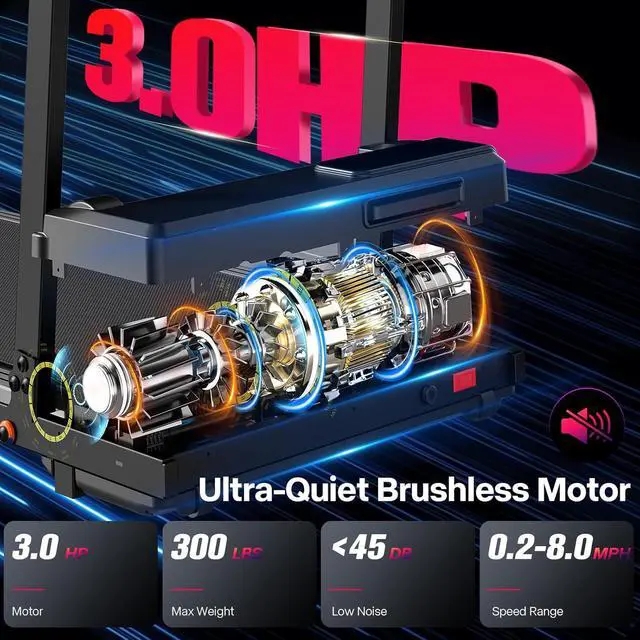 Ultra Quiet 2.5 HP Motor & 300 lb Capacity- Equipped with a powerful yet silent 2.5 HP motor, this under desk treadmill with incline operates smoothly without disturbing others. Perfect for home, office, apartment or small spaces. With a heavy-duty steel frame, the walking pad with handle bar supports up to 300 lbs