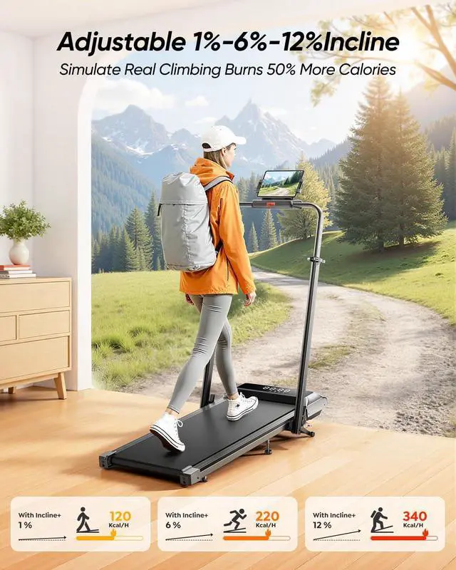Upgraded Adjustable 12% InclineThe new P11 PRO foldable treadmill features an upgraded incline system with 3 manual levels1%, 6%, and 12%. Whether youre walking, power hiking, or simulating uphill climbs, this incline treadmill lets you adjust the intensity and burn up to 70% more calories than on a flat surface. Experience a more efficient, challenging, and rewarding workoutright at home.