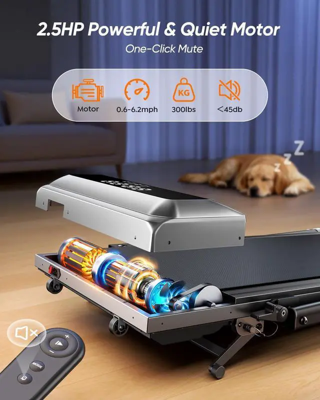 Powerful 2.5HP Motor Quiet Yet StrongEquipped with a 2.5HP high-torque motor, the under desk treadmill supports up to 300 lbs and offers speeds from 0.66. 2 MPH, perfect for walking, jogging, or running. The built-in cooling system ensures quiet operationideal for home or office use, so you can stay active no matter the weather.