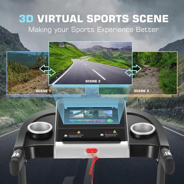 Touchscreen & WiFi Connection The SYTIRY Treadmill features an immersive 10" HD touchscreen that can connect to the internet and play media. It offers a range of scenarios that simulate outdoor running and provides detailed stats and tracking. Connect to the internet and stream videos and music directly to the large screen, enjoying playback through the built-in speaker system.