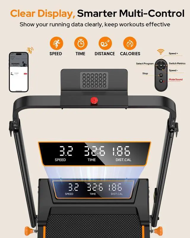3.5HP Powerful Quiet MotorEngineered for results, this 3.5HP portable treadmill supports up to 350LBS with powerful and quiet performance. Tested with 100, 000+ impacts and 8-hour runs, its reinforced frame and stress-resistant motor ensure long-lasting durability. Smooth, seamless at any speed, and its perfect for apartment or office workouts without disturbing others. The LED display lets you easily track time, speed, distance, and calories for a real-time workout overview.