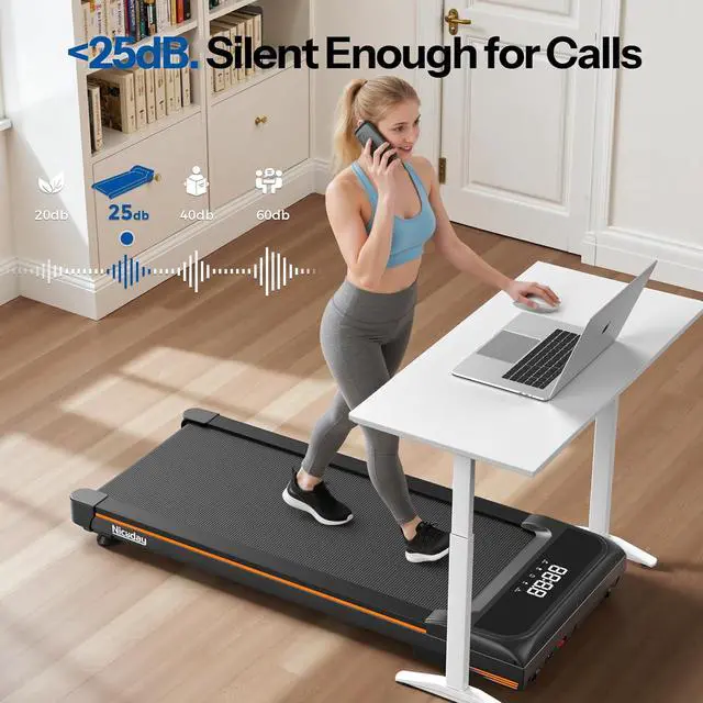 All-Day Power: Under desk treadmill features a powerful 3HP motor with advanced brushless design, significantly reducing noise and heat for whisper-quiet( <25dB) operation even under heavy load. Effortlessly handles incline climbing and continuous walkingno stuttering, no slowdown. Walking pad under desk is your perfect workout partner for work