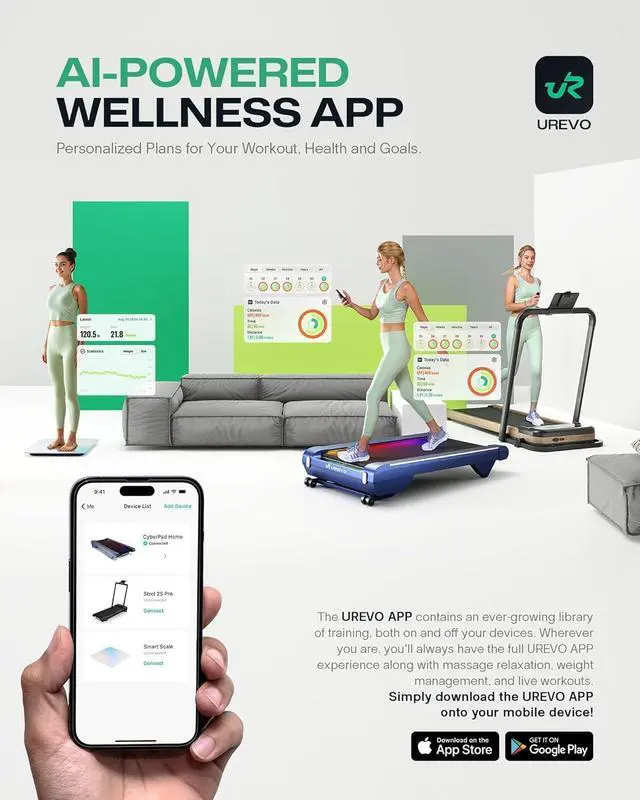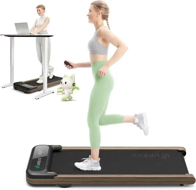 Portable TreadmillThe UREVO E4W standing desk treadmill is lightweight and have two front wheels for easy movement. Installation-free design, ready to use right out of the box. The design is compact and easy to carry, you can place it under the bed or sofa to save space.