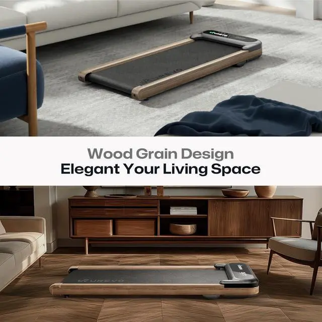 Space-Saving ConvenienceWith a slim profile of less than 12cm in thickness, the wood style walking pad is ultra-portable and easy to store. Cozy style smart treadmill fits effortlessly under your sofa, bed, or in narrow spaces, making it good for small homes or offices where space is limited.