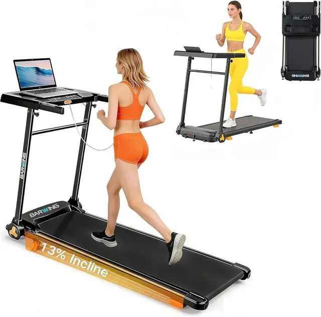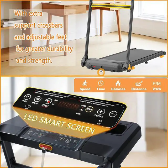 [Reinforced Stability for Lasting Durability] Weighs 65 lbs and includes exclusive stability features: adjustable support feet and a reinforced desk crossbar for superior solidity and extended treadmill life. Built to support daily use as a home treadmill with incline or a foldable walking pad with incline.