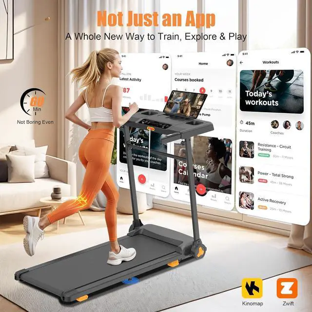 [Smart Apps Connectivity for Immersive Fitness] Sync with popular fitness apps to track your data, set goals, and visualize progress. Experience immersive outdoor running with customizable route mapsan engaging feature for foldable treadmills for home and incline walking pad treadmill users alike.
