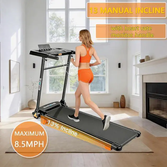 [13% Manual Incline & Wide Speed Range ( 0.58. 5 MPH)] Manual adjust to climb mode instantly. Speed adjusts in precise 0.1 MPH increments for safe, smooth transitionsperfect for everything from walking to intense running. This incline treadmill is ideal for fat-burning workouts and versatile training.