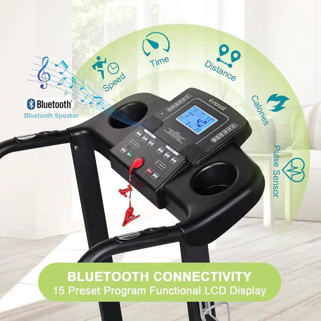 Bulit-In Bluetooth Speaker LCD PannelFunctional LCD display can track the speed, distance, time, and calories in real-time. With 12 preset programs and 3 working modes to meet your different exercise needs. Connect your phone through the integrated Bluetooth speaker and enjoy your favorite music during your workout.