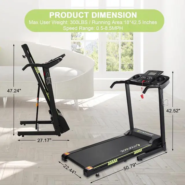 Enlarged Anti-Slip Shock-Absorbing DeckLonger and wider 42.5 " ×18" treadmills can better fit different users' lengths, allowing you to run more freely and comfortably. The multi-layer shock-absorbing deck provides an effective cushion for your knees and muscles, further reducing unwanted noise.