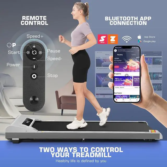 Smart Bluetooth App ControlThe foldable treadmill features smart Bluetooth functionality, allowing you to control it through a mobile app. You can easily adjust speed, modes, and other settings, enjoying a personalized running experience. The user-friendly mobile app interface enables convenient monitoring and tracking of your workout progress, including time, speed, distance, and calorie burn.