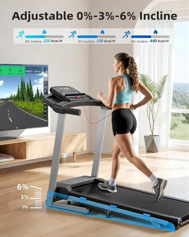 -%-% - Simulates real climbing and customize the intensity of your workout with 3 different manual incline positions. Compared to other high incline treadmills, after several tests, we have adopted the safer and most stable incline of 3%-6% to maximize the safety of exercisers while burning fat efficiently, providing a reassuring exercise experience