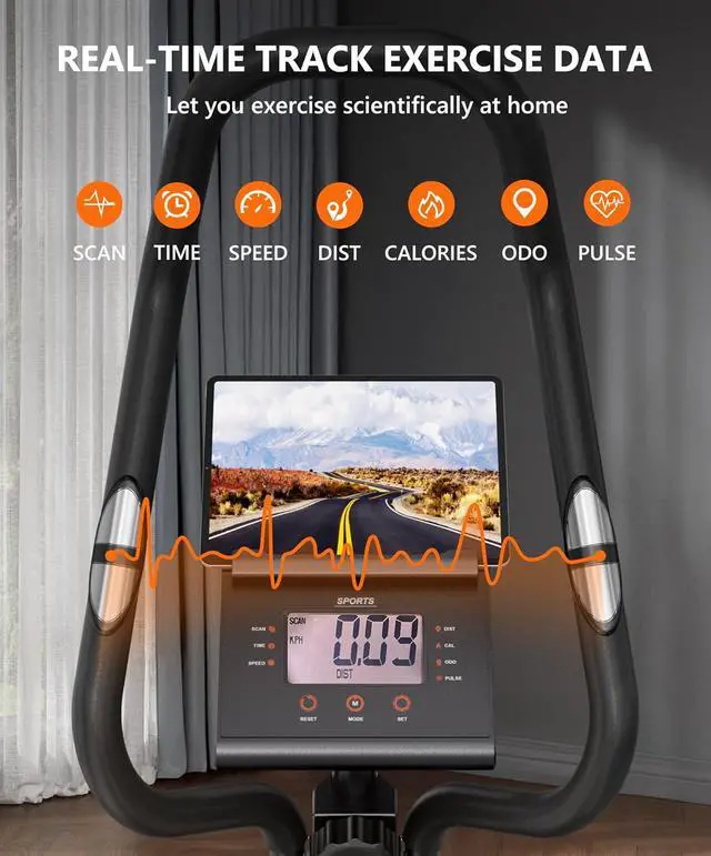 Track Your Progress in Real TimeStay motivated and on target! The digital monitor displays your workout stats live: time, speed, distance, calories, odometer (ODO), and pulse. The exercise data is double-calibrated by rigorous algorithms, motivating you through visual exercise results, helping you stay motivated, and helping you further set more precise goals and ultimately achieve your exercise goals