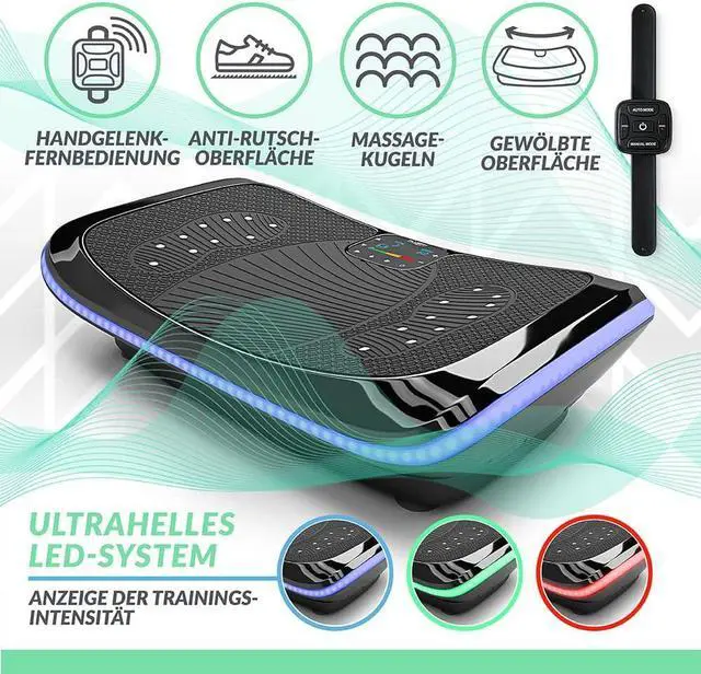 LED LIGHT SYSTEM: The vibration plates ultra bright LEDs tell you how intensely you' re working with Red, Orange and Green lights surrounding the plate & changing alongside your workout. Work core muscles & tone your body at an intensity to suit you.