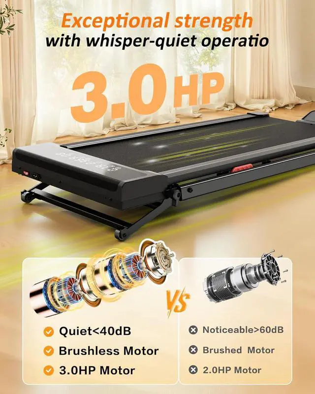 High-Torque 3.0HP Brushless Technology Dont settle for weak motors. Our 3.0HP brushless engine powers this auto incline walking pad, delivering consistent, smooth speed even under heavy loads. As a walking pad with auto incline, it reduces heat buildup and friction, preventing belt slippage for years of reliable home use. This foldable treadmill with auto incline runs whisper-quiet, allowing you to watch TV or listen to music while training hard on your walking pad treadmill with incline