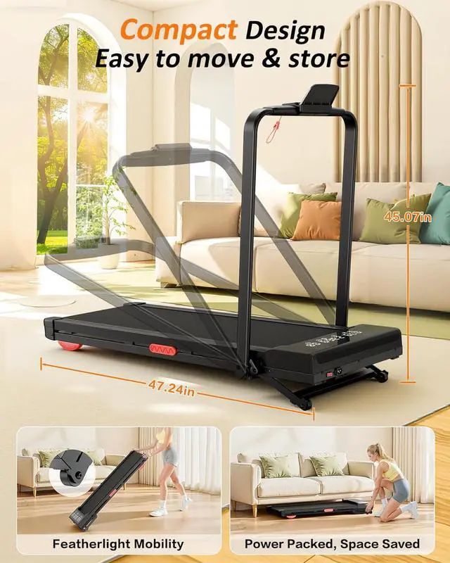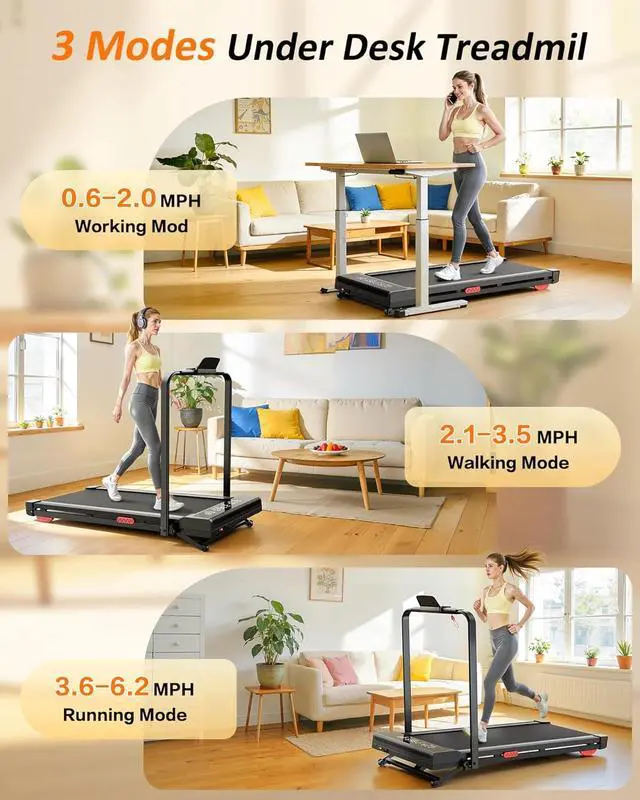 Versatile 0- 6.2MPH Speed FlexibilityTransition seamlessly between a slow walk and a heart-pumping jog on this foldable treadmill. The wide speed range makes this folding treadmill ideal for the whole familyfrom beginners building stamina to seasoned runners. Its foldable walking pad design allows it to fit perfectly in your home office, while the folding walking pad 2-in-1 functionality ensures active movement and easy storage during long conference calls or study sessions