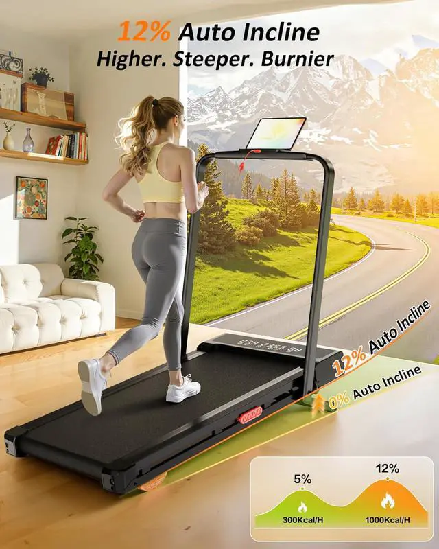 Intense 12-Level Motorized InclineSupercharge your cardio with this treadmill with auto incline, offering 12 levels of electric slope that mimic outdoor hiking and mountain climbing. By using an auto incline treadmill, you activate more muscle groups and dramatically increase your metabolic rate. This walking pad auto incline feature is the most effective way to sculpt your lower body, while the treadmill auto incline technology ensures professional-level fat burning in a shorter amount of time