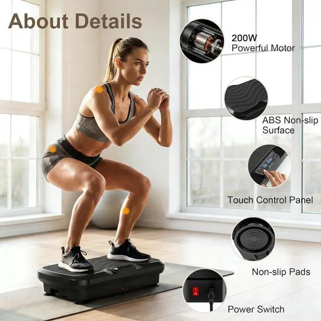 BUILD YOUR DREAM BODYGet the sculpted body you wanton your terms. Fire up your fitness revolution with the power plate vibration platform today! Equipped with a high-power 200W motor and multiple workout modes, it targets trouble zones like your waist, abs, glutes, and legs for full-body toning. It helps boost your reflexes while torching calories and blasting fat fast, actually helping your body process fat faster than running does.