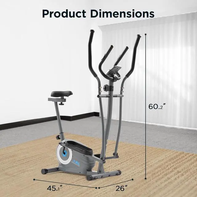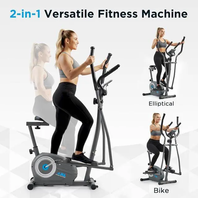 VERSATILE 2-IN-1 DESIGNEffortlessly switch between elliptical strides and seated cycling on one compact machine. Dual-direction (forward & reverse) pedaling lets you vary muscle emphasis, delivering a full-body workout that engages both upper and lower muscle groups while freeing up valuable floor space