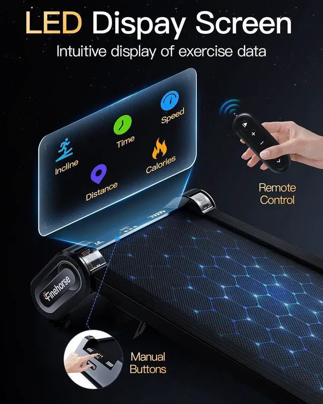 LED Display & Remote Control: Akluer auto incline walking pad treadmill with incline features an intuitive LED display that tracks your Incline, speed, distance, time, calories burned, and incline level. The included remote control, touch screen and handle remote control allows you to adjust incline, speed, start, or stop your workout effortlessly, so you can stay focused on your fitness goals.