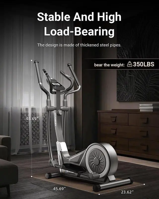 COMMERCIAL-GRADE STEEL FRAME FOR MAXIMUM STABILITY Built with a heavy-duty steel frame, the HARISON home elliptical machine delivers superior stability compared to lightweight ellipticals. Enjoy confident, wobble-free workouts with a natural stride, even during longer or more frequent training sessions