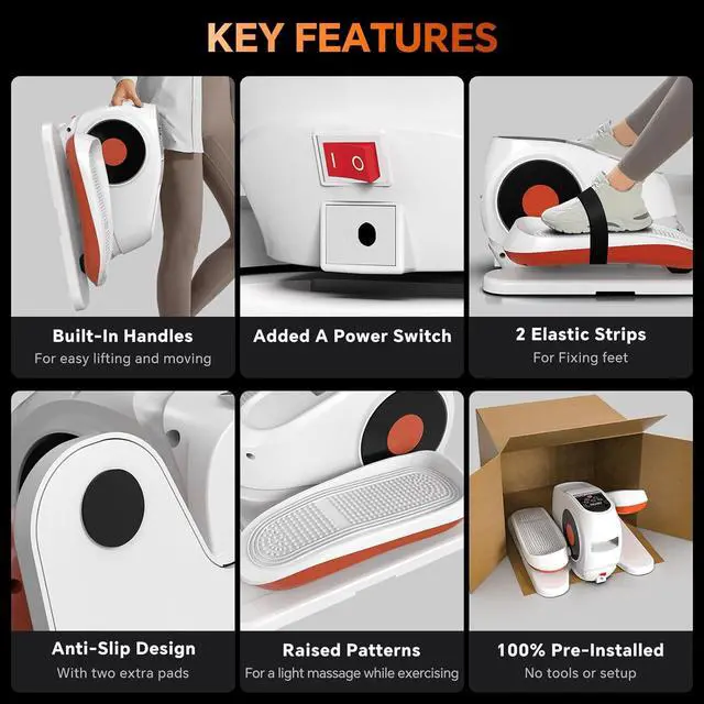 UNDER-DESK ELLIPTICAL MACHINE: The professional triangular claw structure ensures smoother rotation and reduced noise. The roller' s anti-slip sticker design is more labor-saving and quieter than models requiring regular lubricating oil. Perfect for open-plan offices, nurseries, or workouts during TV time.