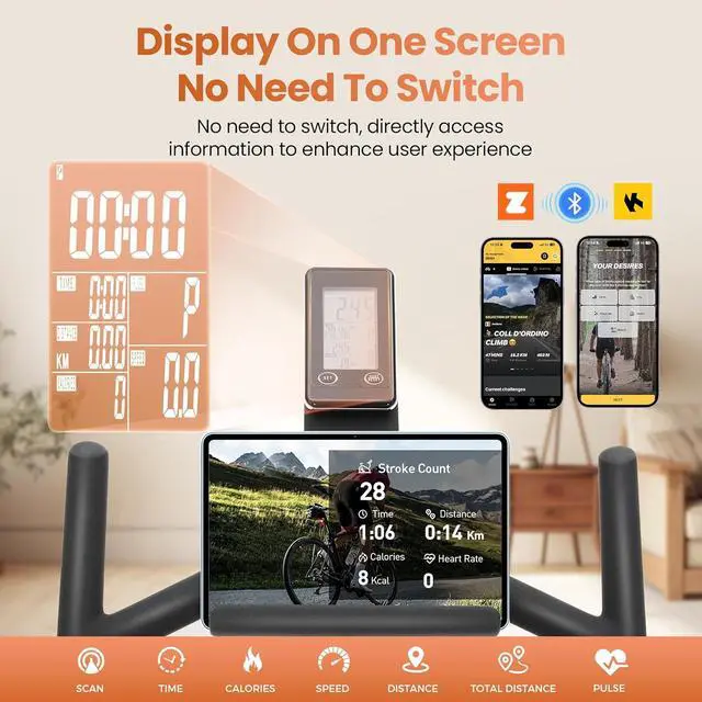 Thoughtful Design: Tablet Holder holds tablets and mobile phones, allowing you to listen to music or watch videos while exercising. In addition, the transport wheels make it easy to move the bike with ease and effort