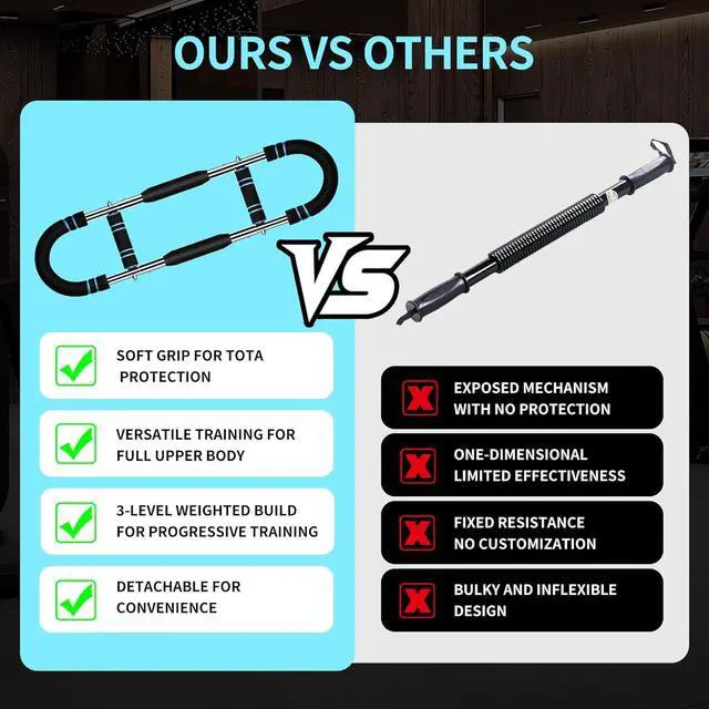 Compact and Portable for Anywhere Fitness: Portable chest trainer easily disassembles, fitting into a carry-on bag, making this wrist and forearm strengthener ideal for workouts at home, the office, or outdoor settings. Experience full-body upper body workouts without the bulk of traditional gym equipment!