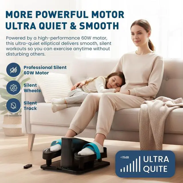 Whisper-Quiet Performance Enjoy whisper-quiet workouts with the Club Kefi under desk elliptical machine. Built with advanced silent technology and a 60W motor, its perfect for home offices and living roomsexercise anytime without disturbing others.
