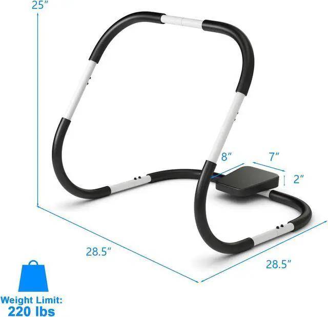 Premium Material & Solid StructureThis AB cruncher is constructed with high quality steel frame, which features great sturdiness and excellent lifespan. With triangular structure, the sit up assistant holds up to 220lbs. Moreover, the firm connections between each part ensure overall stability safety.