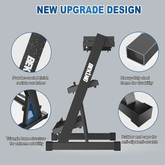 BUILT LIKE COMMERCIAL GYM RACK Secures 1000LBS for Home Safety, Stop worrying about wobbling or collapse. BEKING dumbbell rack is constructed with heavy-duty commercial steel and a triangular support structure, engineered to stably hold all of your weights secure at all times. Train with confidence, knowing your weights and floor are protected, experience workout sessions in the comfort of your home.