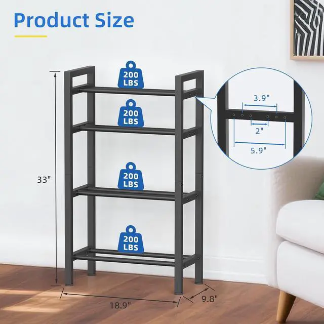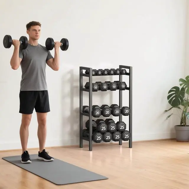 [4-Tier Design]: Unlike most three-tier dumbbell racks on the market, the 4-tier weight rack saves more floor space. This vertical storage design fits perfectly in narrow cornerssuch as those in your garage, home gym or patiohelping you make the most of limited areas without sacrificing storage capacity