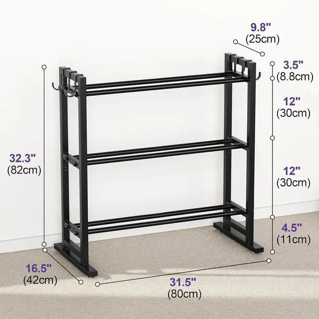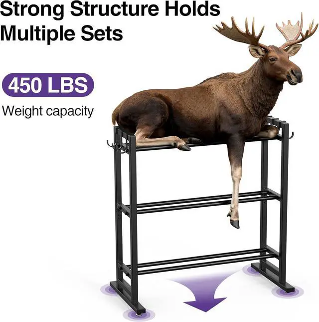 Stronger 150 lb-Per-Tier Load: Reinforced metal frame now supports 150 lb per shelfup to 450 lb totalfor heavier home-gym setups