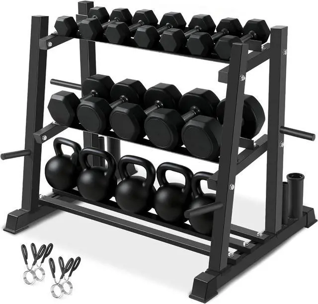 Safe & Conveniendumbbell racktThe three shelves can work easily and safely without shaking because of storing too much equipment. The tilt angle design is ergonomic for easy access to equipment. The dumbbell storage rack also comes with 4 non-slip snaps to make your home gym more professional and secure.