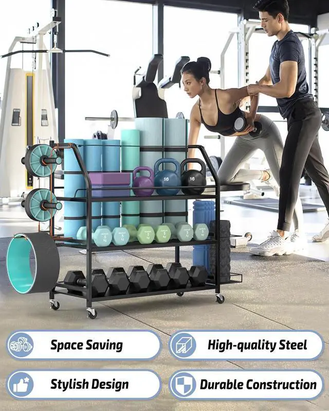 Ideal Option for Home GymThree open wide shelves and two additional side storage areas provide plenty of space for yoga mats, dumbbells, and other home gym equipment.