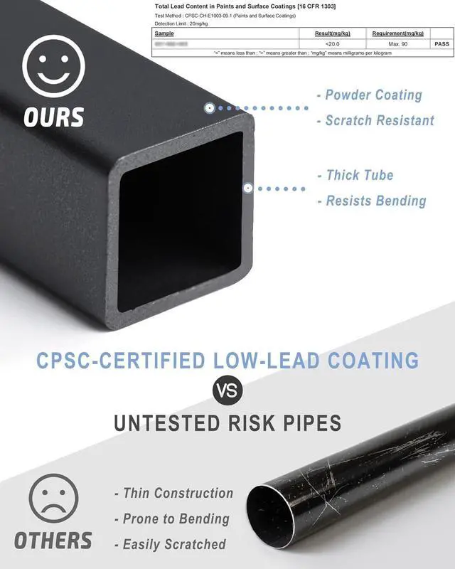 Sturdy and SafeMade of high quality metal with a maximum weight capacity of 350 lbs. The surface coating meets the CPSC-16-CFR-Part-1303 standard, durable and safe to use.