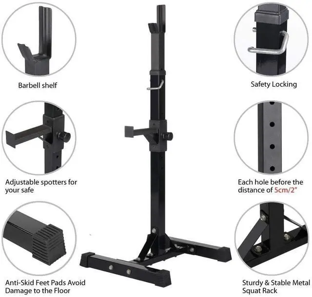 Adjustable: The barbell stands have 14 adjustable safety pins on each post to help you adjust to the appropriate height to meet your need (5cm gaps); adjustable Height 44-70 inch / 112-178 cm.