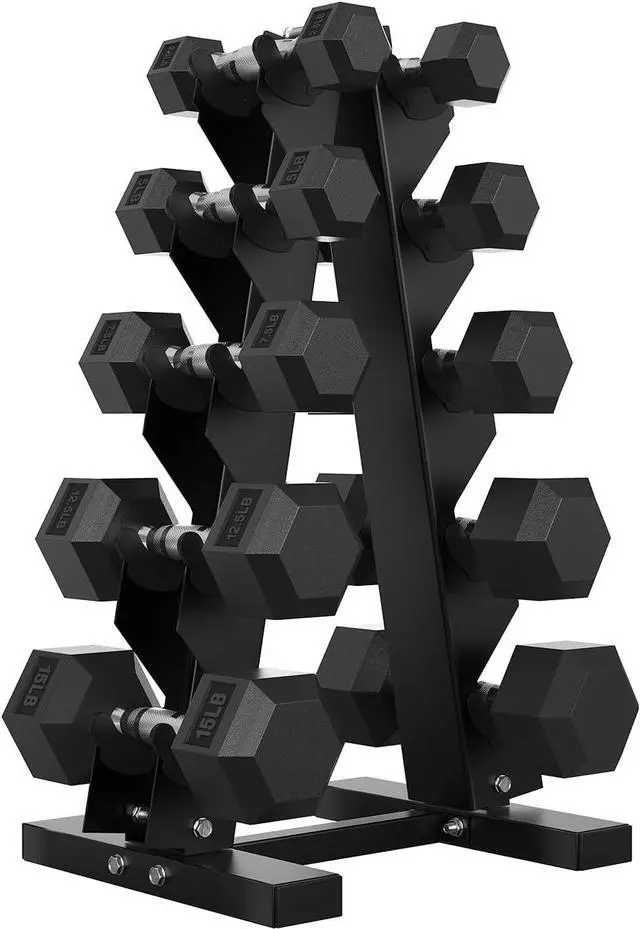 85 lb dumbbell set include 2 X 2.5 lb, 2 X 5 lb, 2 X 7.5 lb, 2 X 12.5 lb, 2 X 15 lb with rack.