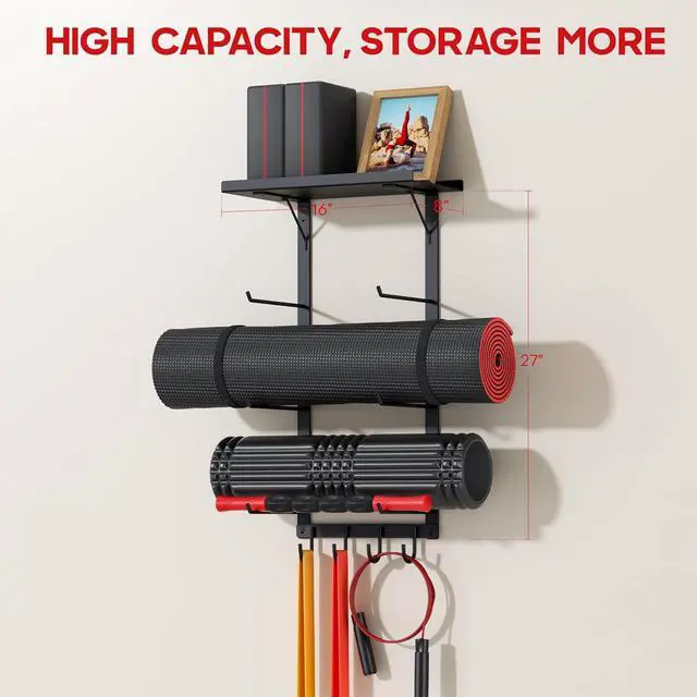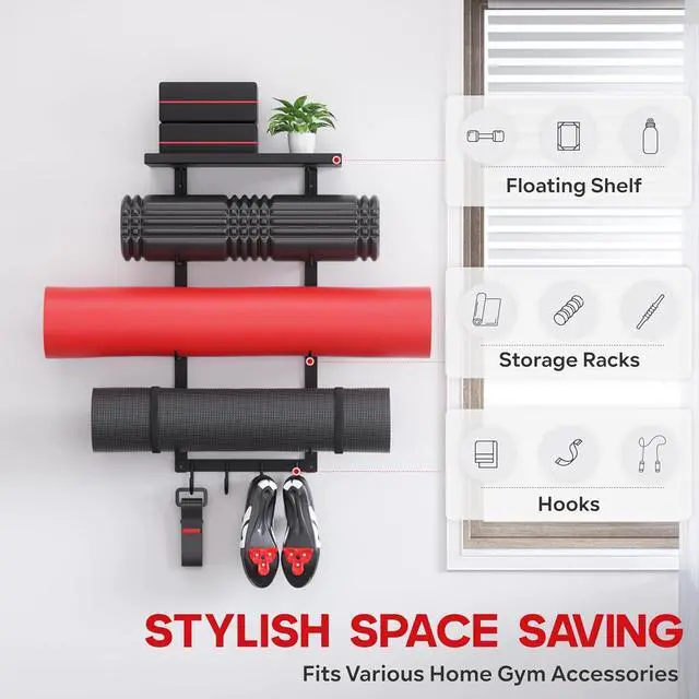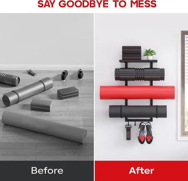 Space-Saving & Effective Organizer: Store yoga mats, foam rollers, and workout bands neatly with this wall-mounted yoga mat holder that maximizes space; keep yoga accessories or home gym equipment no longer scattered on the ground; no more clutter