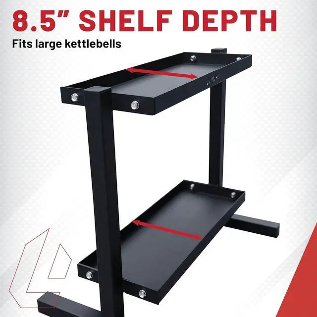D shelves: Holds even large kettlebells with ease