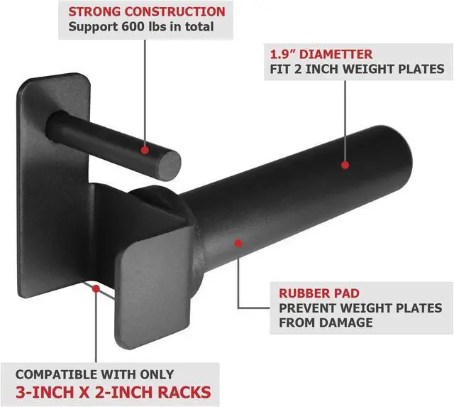 EASY TO INSTALL AND USE: A2ZCare Weight Plate Holder can be easy to insert and lock-in design. Just slide pin into power rack' s hole and swing down to lock in place. The design is especially ideal for loading and unloading the weight plates. Fit most of 3 x 2 square tubes rack and 0.6 hole or larger holes, but not all.