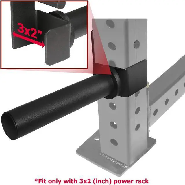 COMPATIBLE WITH ONLY 3-INCH x 2-INCH RACKS, 0.6 HOLE or LARGER HOLES AND 2 WEIGHT PLATE, BUT NOT ALL. Please note that this type does not compatible with both 2x2 and 3x3 power racks. (IT WOULD BE MUCH APPRECIATED IF YOU CHECK YOUR RACK DIMENSIONS BEFORE MAKE A PURCHASE SO AS TO PREVENT FROM UNCOMFORTABLE RETURNING PROCESS).