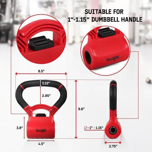 UPGRADED GRIP GROOVE DESIGN: Compatible with dumbbells ranging from 1- 1.15 inches in diameter, adjustable kettlebell converter features TBR core with fixed edges; Dumbbell adapter provides secure grip and reduces movement on smaller handles for more comfortable hold