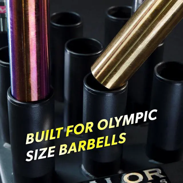 Protective Plastic Sleeves Each 2 diameter slot features a plastic liner to prevent scratches, reducing wear and tear on your premium weightlifting barbells.