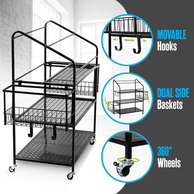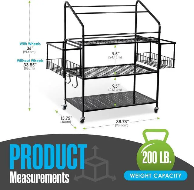 ALL-METAL CONSTRUCTION: Built to withstand the rigors of daily use, this workout organizer offers a reliable and long-lasting solution for organizing your equipment. The all-metal design provides the stability and support needed to securely store various items such as dumbbells, kettlebells, and other fitness gear.